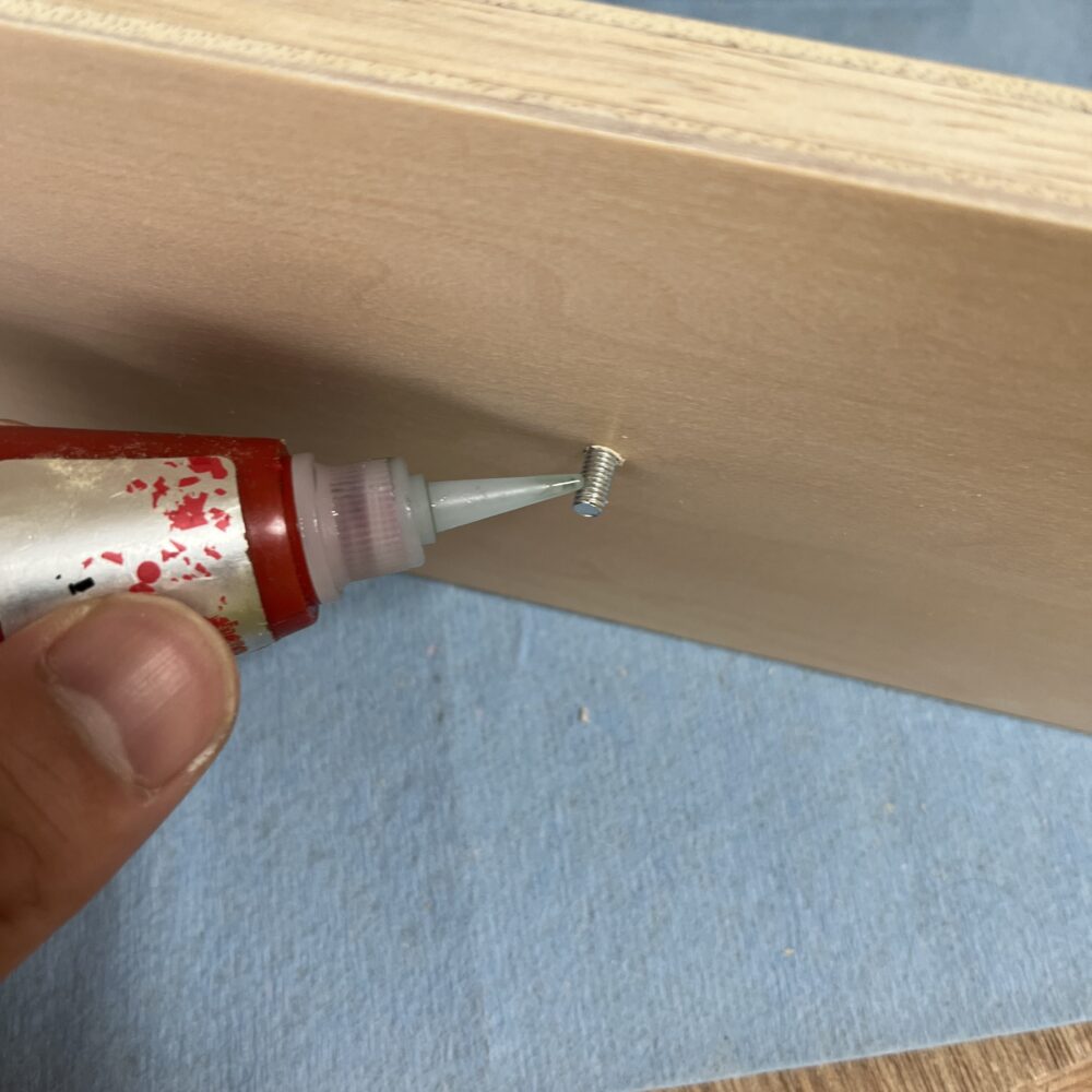 引き出しのつまみにはねじロックでゆるみ止めしておこう。